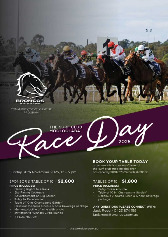 Raffles, Members’ Draws, Sports Events, Live Music, Special Events and Promotionsβ¦all of this and more are waiting for you at The Surf Club Mooloolaba.